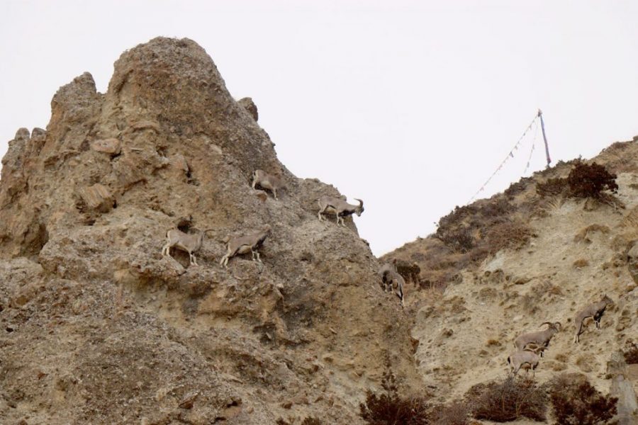 मनाङ ङिस्याङ गाउँपालिका ८ गुमछाङस्थित पहाडमा बुधबार भेटिएको नाउरको बथान । समुन्द्री सतहदेखि तीन हजार मिटर उचाइको हिमाली क्षेत्रमा पाइन्छ ।