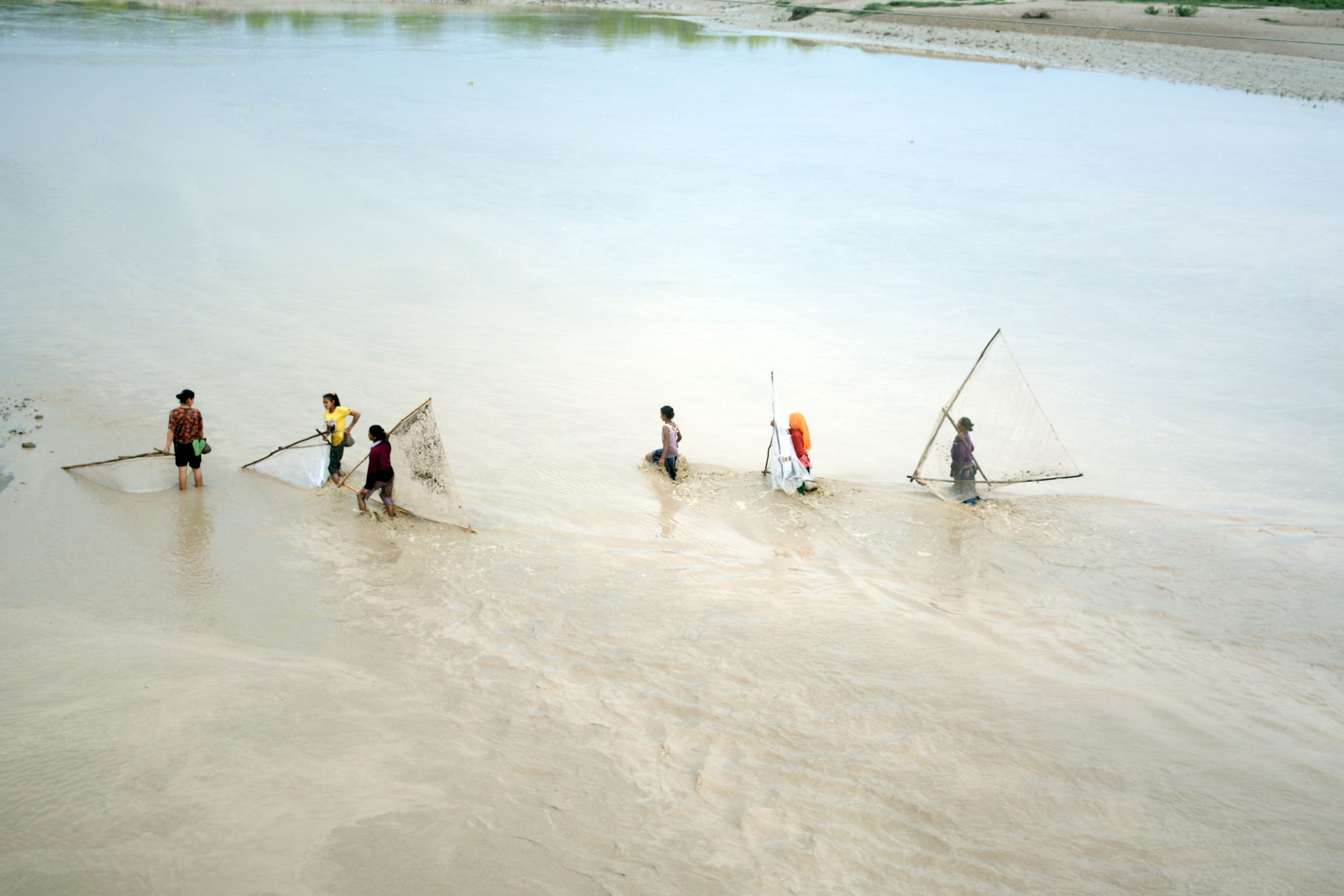 कैलालीको घोडाघोडी नगरपालिका–१० पहलमानपुरस्थित कान्द्रा नदीमा आएको बाढीमा ज्यानको प्रर्वाह नगरी माछा मार्न पुगेका थारु समुदायका महिला ।
