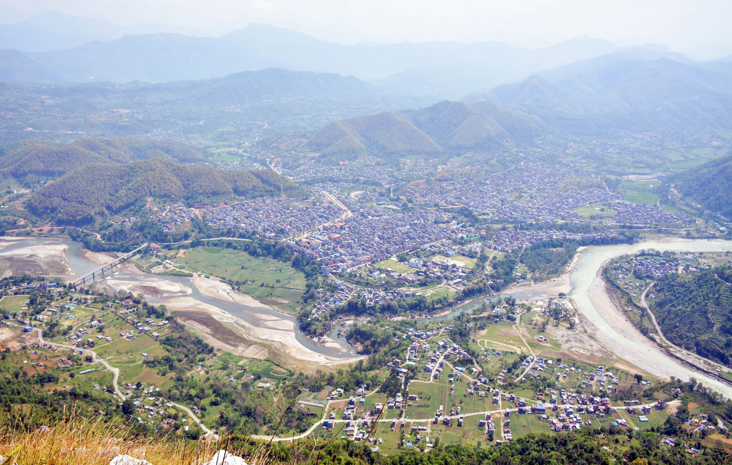 तनहुँको व्यास नगरपालिका–५ स्थित मानहुँकोटबाट देखिएको दमौली बजारलगायत आसपासका क्षेत्र । दैनिक दुईतीन सय पर्यटक पुग्ने मानहुँकोट बन्दाबन्दीका कारण यतिबेला सुनसान छ ।