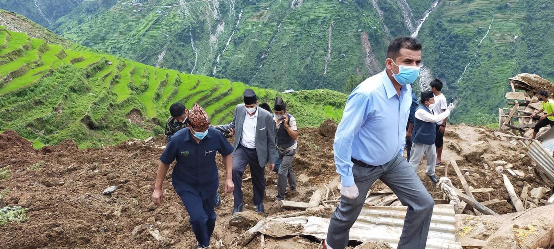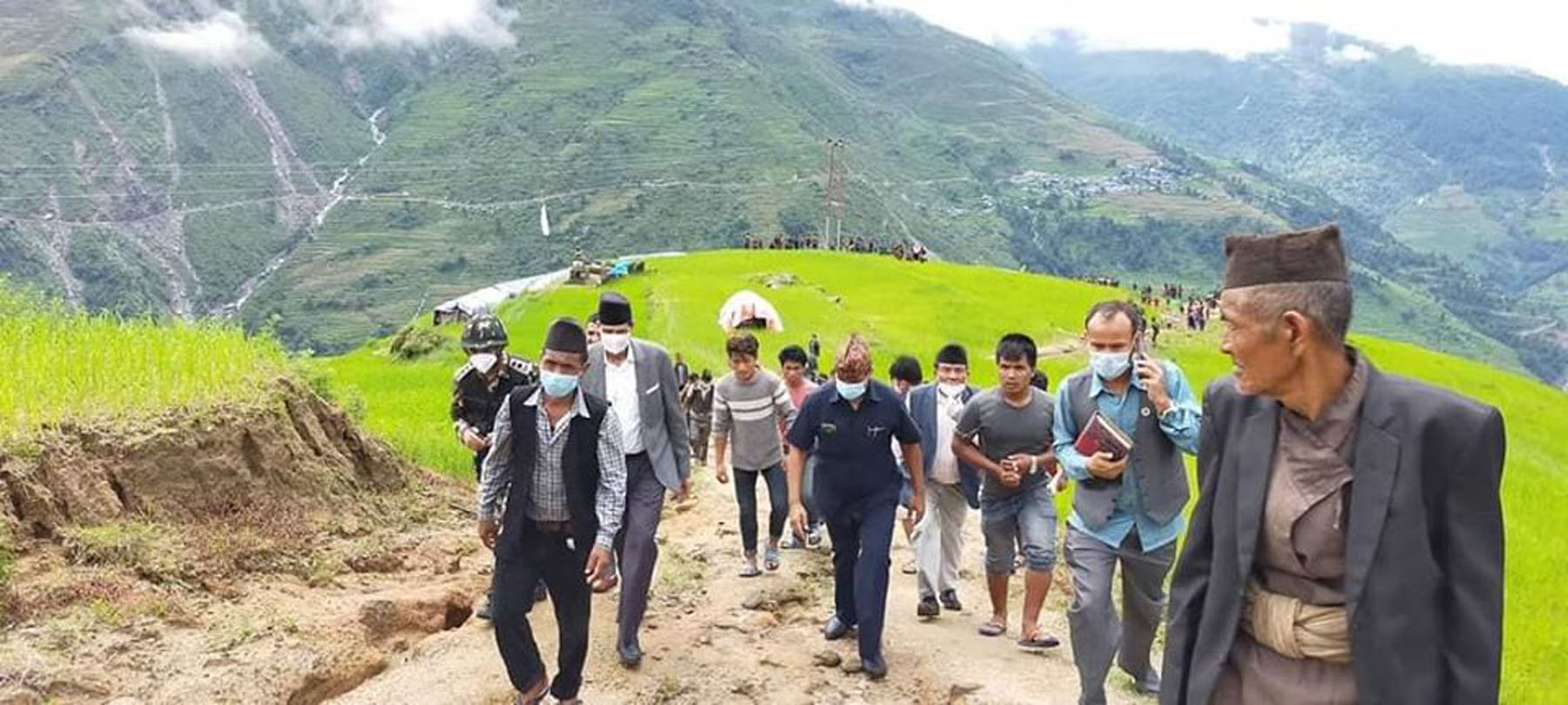 जुगल गाउँपालिका– २ लिदीमा गएको भीषण पहिरोमा परेकालाई उद्धार गर्न सभामुख अग्निप्रसाद सापकोटालगायतका टोली हेलिकप्टरमार्फत घटनास्थलमा ।