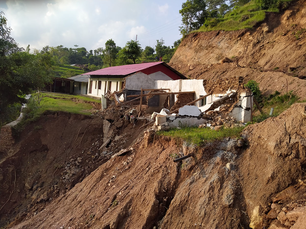 पहिरोले वालिङकाे विद्यालय भवनमा पुर्याएको क्षति