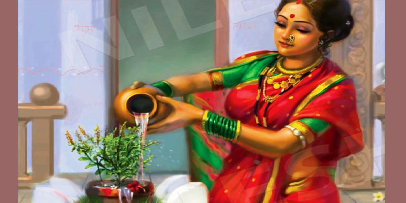 वैदिक सनातन धर्म एवं आर्युवेदमा तुलसीको ठूलो महत्व छ । घरको आँगनमा तुलसीको मोठ बनाउने र तुलसीको पूजा गर्ने एवं तुलसीको पानी पिउने चलन निकै पुरानो हो । तुलसी जल पिउनाले विविध रोगहरुबाट छुटकारा पाइने आर्युवेदमा वताइएको छ । तुलसीको मोठ विविध धार्मिक पर्वदेखि मृत्युशैयासम्म प्रयोग हुँदै आएको छ । खानामा थोरै तुलसीको पात राखेर खानाले स्वास्थ्यमा राम्रो प्रभाव पर्ने आयुर्वेदको मत छ । भगवान् विष्णु र कृष्णको अत्यन्त प्रिय रहेको तुलसी वृक्ष सम्बन्धि अनेक रोचक प्रसंगहरु पुराणका कथाहरुमा वर्णन गरिएका छन् । वैज्ञानिक मत अनुसार तुलसीमा अन्य वृक्षको तुलनामा अक्सिजनको मात्रा धेरै हुन्छ । आषाढ शुक्ल एकादशीमा रोपिएको तुलसीलाई मोठ सिँगार पटार एवं लिंगा चौका गरी हरिबोधिनी एकादशीमा भगवान् दामोदरसँग धुमधामले विवाह गरिदिने चलन पनि छ । कतै कतै पिपलसँग विवाह गरिदिने चलन पनि छ ।