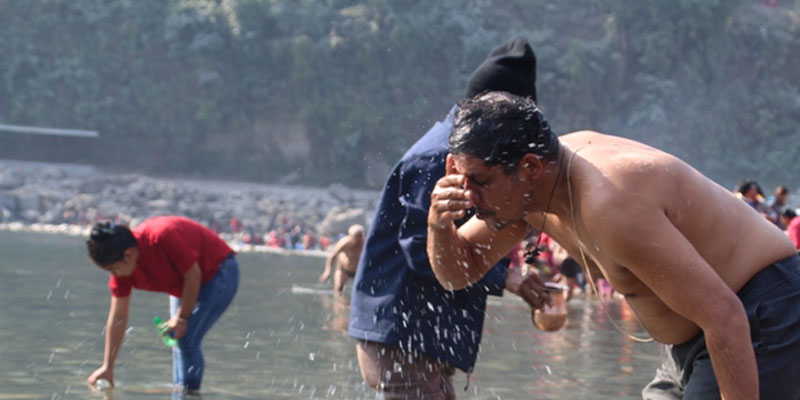 सामाजिक दूरी कायम गर्दै कालीगण्डकी स्नान