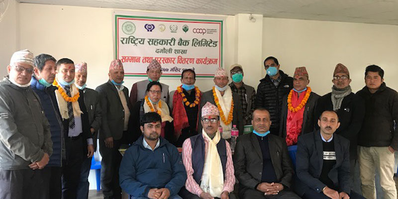 बैंकको दमौली शाखामा उत्कृष्ट कारोबार गर्ने रोयल सहकारी संस्था लिमिटेड दुलेगौडा र नियमित कारोबार गर्ने साहारा कृषि सहकारी संस्था लिमिटेड दमौलीलाई पुरस्कृत गरिएको हो । रोयल सहकारीका कोषाध्यक्ष राजकुमार वाग्ले र साहारा कृषि सहकारीका अध्यक्ष कृष्ण आचार्यलाई ब्यास नगरपालिकाका प्रमुख बैकुण्ठ न्यौपाने र राष्ट्रिय सहकारी बैंकका सञ्चालक तथा गण्डकी प्रदेशका संयोजक रामबहादुर जि.सी.ले सम्मानपत्र सहित पुरस्कृत गरेका हुन् ।