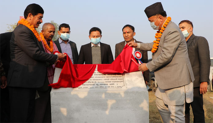 मन्त्री नेम्बाङ्ग र महिला, बालबालिका तथा जेष्ठ नागरिक मन्त्री लिलानाथ श्रेष्ठले सोमबार संयुक्त रुपमा शिलालेख अनावरण गरेर उक्त खण्डको शिलान्यास गरेका हुन् ।
