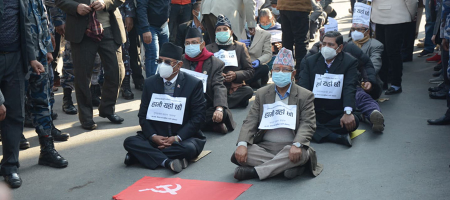 काठमाडौं । नेकपाको प्रचण्ड–माधव पक्षले संसद विघटनविरुद्ध आजबाट सडक संघर्ष चर्काउने भएको छ । बिहीबार सम्पन्न केन्द्रीय समिति बैठकको निर्णयअनुसार प्रचण्ड माधव पक्ष शुक्रबारबाट सडक संघर्षमा उत्रिएको हो । त्यसक्रममा १० बजे माइतिघर मण्डलामा आफ्नो पक्षका सांसदसहित नेता कार्यकर्ता भेला भएर सर्वोच्च अदालत जाँदैछन् ।