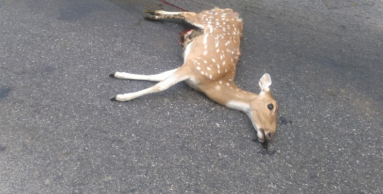 मोटरसाइकलको ठक्करबाट हरिणको मृत्यु