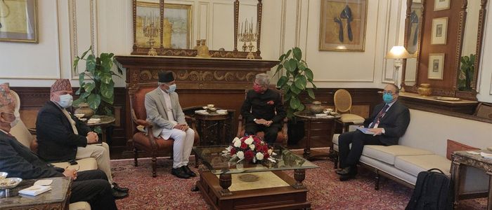 काठमाडौं । नेपाल–भारत संयुक्त आयोगको छैटौँ बैठकमा भाग लिने सिलसिलामा नयाँदिल्लीमा रहेका परराष्ट्रमन्त्री प्रदीपकुमार ज्ञवाली र भारतका बाह्य मामिलामन्त्री सुब्रह्मण्यम जयशङ्करबीच हैदरावाद हाउसमा आज बिहान भेटवार्ता भएको छ । त्यस अवसरमा उनिहरुबीच नेपाल–भारत सम्बन्धका साथै समसामयिक क्षेत्रीय र अन्तरराष्ट्रिय चासोका विविध विषयमा विचारविमर्श भएको थियो ।