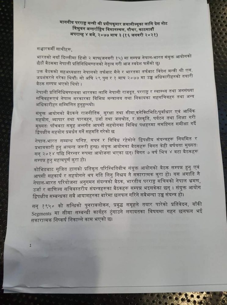 काठमाडौं । परराष्ट्रमन्त्री प्रदीप ज्ञवालीले आफ्नो भारत भ्रमणले दुई देशबीचको सम्बन्ध मजबुत बनाउन योगदान पुगेका बताएका छन् ।