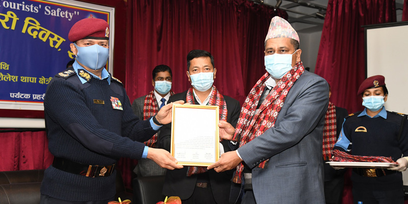 काठमाडौं । सोमबार नेपाल पर्यटन बोर्ड भृकुटीमण्डपमा ४२ औं पर्यटक प्रहरी दिवस मनाइएको छ । एक समारोहबीच प्रहरी महानिरीक्षक शैलेश थापा क्षेत्रीको प्रमुख आतिथ्यमा पर्यटक प्रहरी दिवस, २०७७ मनाइको हो ।