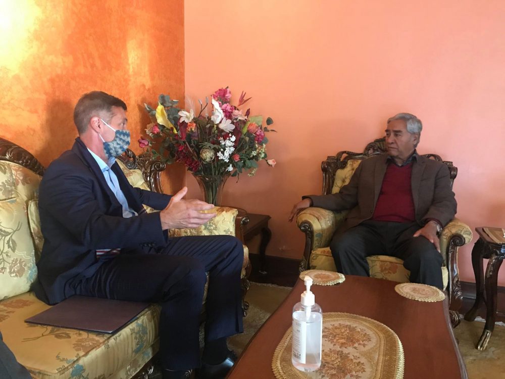 काठमाडौं । नेपालका लागि अमेरिकी राजदूत र्याण्डी बेरी र नेपाली कांग्रेसका सभापति शेरबहादुर देउवाबीच आज (मंगलबार) भेटवार्ता भएको छ ।