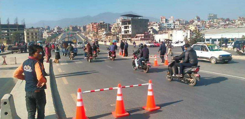 एयरपोर्ट नयाँ गेट, कार्गो, तिलगंगा, बालकुमारी, भाटभटेनी ओरालो, बल्खुचोक, सिता पम्प, खसिबजार, सितापाईला उकालो, वाफल, सानोभर्याङ, वनस्थली, बबरमहल लगायतका सडकखण्डमा ट्राफिक कोनहरू राखिएको र यसलाई निरन्तरता दिइने महाशाखाले जनाएको छ ।