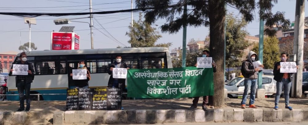 संसद् विघटनको विरोधमा विवेकशील पार्टीद्वारा माइतीघरमा प्रदर्शन