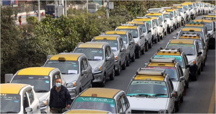 टुटल र पठाओ बन्द गर्नुपर्ने माग राख्दै ट्याक्सी व्यवसायी आन्दोलनमा