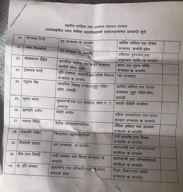 सरकारले गर्यो ३१ सहसचिवको सरुवा (सूचीसहित)