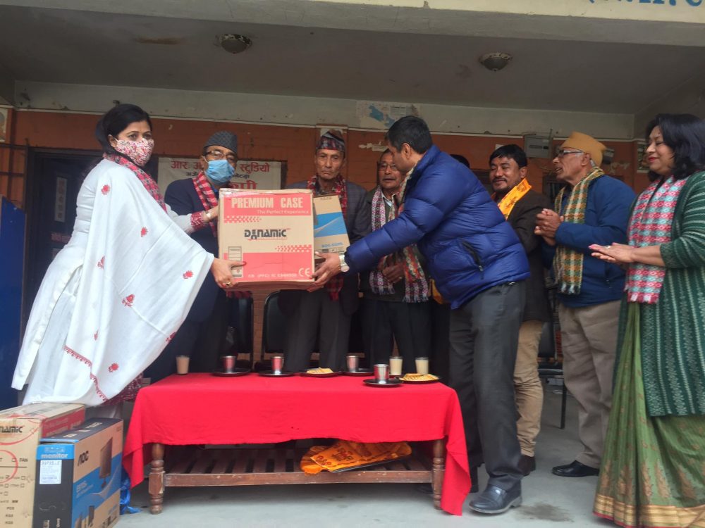 नेपाल सरकारका पूर्वमन्त्री एंव माननीय भिमसेनदास प्राधन प्रमुख अतिथि,विद्यालय व्यवस्थापन समितिकाअध्यक्ष चित्रध्वज थापा विशिष्ट अतिथि र समाजसेवी एंव बिकास प्रेमी इन्द्रमान महर्जनको प्रमुख आथित्यतामा फाउण्डेशनकी अध्यक्ष अम्बिका शर्माले विद्यालयलाई दुई थान कम्प्युटर वितरण गरेकी हुन् ।