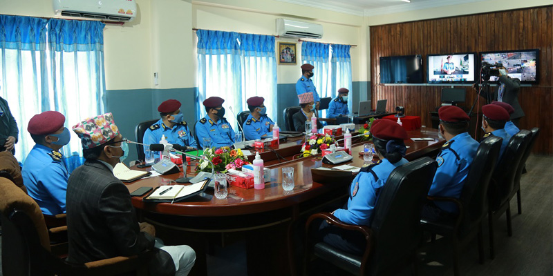 उक्त अवसरमा गृहसचिव न्यौपानेले प्रहरी प्रधान कार्यालय कमाण्ड सेन्टरको अवलोकन तथा निरीक्षण गर्नुका साथै उक्त सेन्टरबाट भिडियो कन्फरेन्सद्वारा ७ वटै प्रदेश प्रहरी कार्यालयको शान्ति सुरक्षाबारे जानकारी लिँदै प्रदेश प्रहरी प्रमुखहरूलाई आवश्यक निर्देशन दिए । उनले सबै प्रदेशको शान्ति सुरक्षाको अवस्था चुस्त दुरुस्त राख्न तथा आ–आफ्नो क्षेत्रमा तस्कारी नियन्त्रण एवम् राजश्व वृद्धिमा थप सक्रियता बढाउनुपर्ने बताए ।