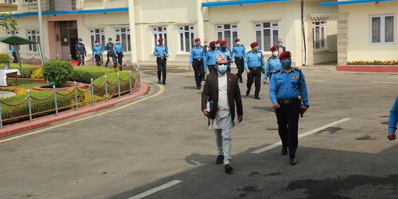 गृहसचिव न्यौपानेद्वारा प्रहरी प्रधान कार्यालय निरीक्षण