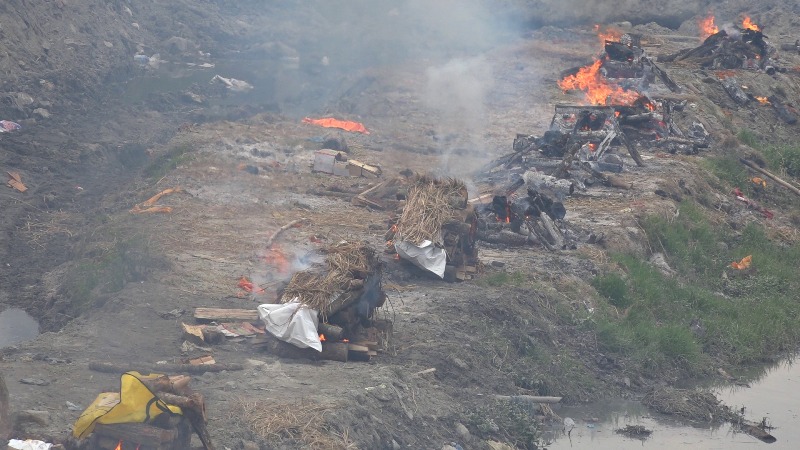 वाग्मतीकिनारमा ३० वटा चिता बनाएर शव जलाउन सुरु