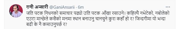 एउटा लोभ्याउने मृत्यु। मलाई पनि उज्वल थापा जस्तै मर्न मन छ। तर हरेक मृत्यु र जिबन पैसा, कमाई, घर र सम्पत्तिसँग जोडिएको छ। कठै दुनियाँ । हरेक मान्छेलाई स्वतन्त्र मर्न देउ।