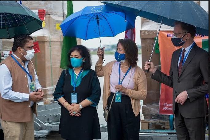 नेपाललाई कारोनाविरुद्ध लड्न इटालीद्वारा स्वास्थ्य समाग्री हस्तान्तरण