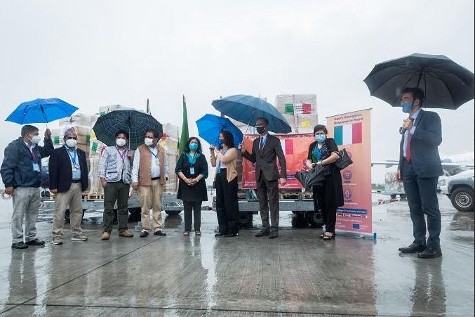 काठमाडौं । नेपाललाई कोरोना महामारीको दोस्रो लहरविरुद्ध लड्नका लागि युरोपियन युनियनको नागरिक संरक्षण संयन्त्रमार्फत इटालीले स्वास्थ्य उपकरण तथा सामग्री पठाएको छ । ती उपकरण तथा सामग्री आज शुक्रबार बिहानै नेपाल आइपुगेको छ ।