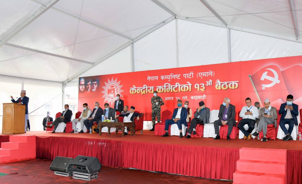 अध्यक्ष ओलीकै निर्देशनमा यो बैठक दशौं राष्ट्रिय महाधिवेशन आयोजक कमिटीकै निरन्तरता हुन लागेको हो । बरिष्ठ नेता माधवकुमार नेपाल समूहले भने दशौं राष्ट्रिय महाधिवेशन आयोजक कमिटीको बैठकलाई अवैध भन्दै आएको छ । यो समूहले अदालतको फैसला अनुसार एमाले २ जेठ २०७५ अगाडि फर्कनुपर्ने अडान राख्दै आएको छ ।
