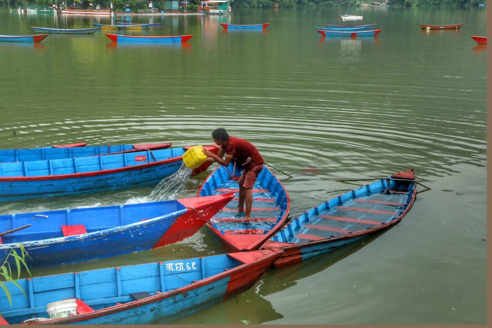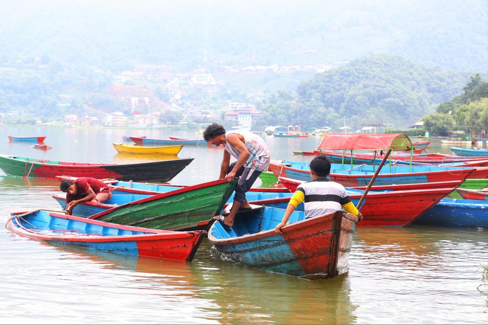 फेवातालमा पानीको सतह बढेपछि डुंगा निकाल्दै चालक (फोटो फिचर)