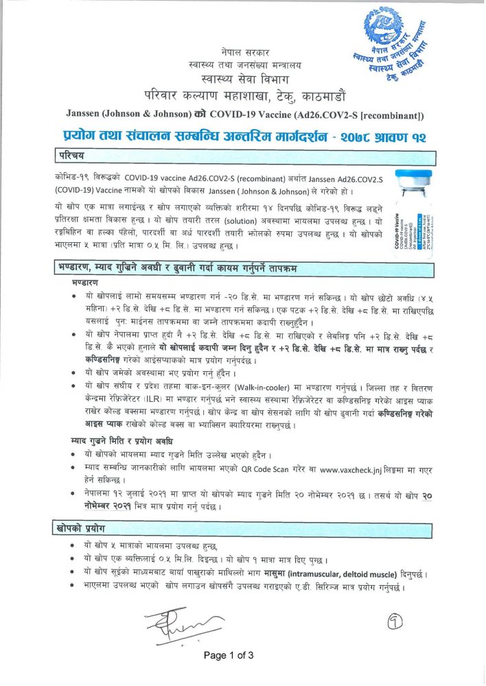 जोन्सनको खोप कस्तो अवस्थामा लगाउन हुने र नहुने ? यस्तो छ सरकारको मार्गदर्शन !