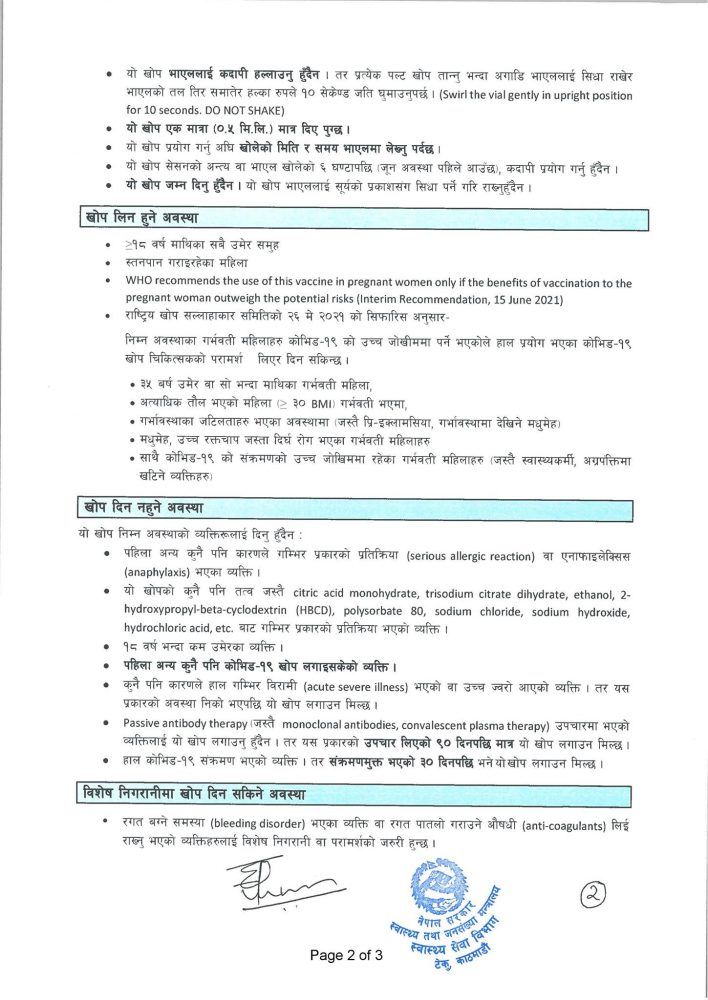 –पहिला अन्य कुनै पनि कोभिड–१९ को खोप लगाइसकेका व्यक्ति ।