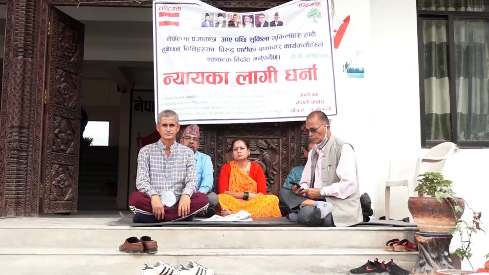 उता, ३० दिनयता पार्टी केन्द्रिय कार्यालयमा धर्ना दिँदै आएका रौतहट क्षेत्र नम्बर १ का नेता, कार्यकर्ताहरुले पार्टीको विधि र विधान विपरित क्रियाशील सदस्यता वितरण गर्ने काम गरिएकाले त्यसको विरोधमा आफूहरु पार्टी केन्द्रिय कार्यालयमा धर्ना दिने कामलाई जारी राख्न बाध्य हुनु परेको बताएका छन् ।