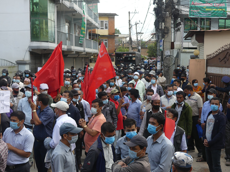 काठमाडौं । नेपाल मजदुर किसान पार्टीले एमसीसीको विरुद्धमा अमेरिकी दूतावास अगाडि प्रदर्शन गरेको छ । प्रदर्शनमा प्रहरी र प्रदर्शनकारीबीच झडप हुँदा एक प्रदर्शकारी घाइते भएका छन् ।