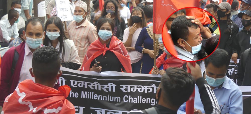 काठमाडौं । नेपाल मजदुर किसान पार्टीले एमसीसीको विरुद्धमा अमेरिकी दूतावास अगाडि प्रदर्शन गरेको छ । प्रदर्शनमा प्रहरी र प्रदर्शनकारीबीच झडप हुँदा एक प्रदर्शकारी घाइते भएका छन् ।