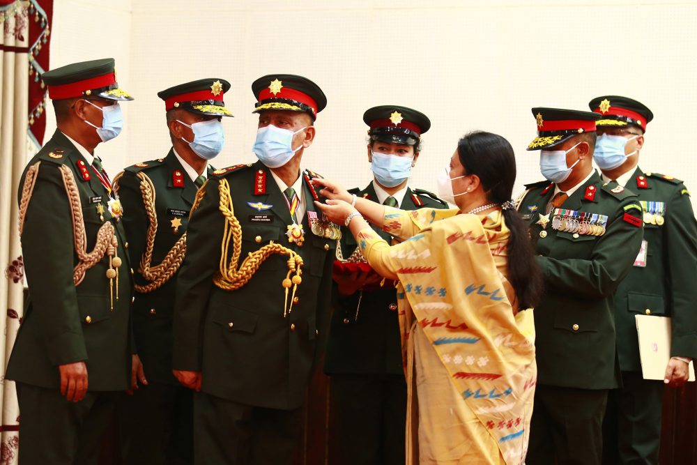 राष्ट्रपति भण्डारीद्वारा नवनियुक्त प्रधानसेनापति शर्मालाई दर्ज्यानी चिह्न प्रदान