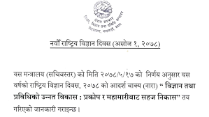 नवौं विज्ञान दिवसको नारा- ‘विज्ञान तथा प्रविधिको उन्नत विकास : प्रकोप र महामारीबाट सहज निकास’