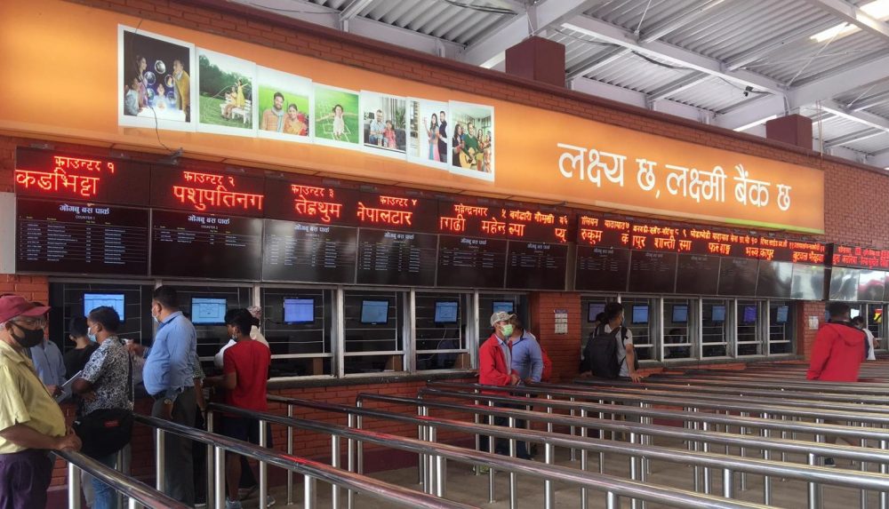 काठमाडौं । काठमाडौंको गोङ्गबुस्थित नयाँ बसपार्कमा अग्रिम टिकट बुकिङका लागि ‘टिकट काउन्टर’ थप गरिएको छ । सरकारले भोलिदेखि दसैँमा घर जानका लागि लामो तथा मध्यम दूरीका बसको अग्रिम टिकट बुकिङ खुला गरेसँगै नयाँ बसपार्क सञ्चालन गरेको ल्होत्से बहुउद्देश्यीय प्रालिले व्यवसायीको सहकार्यमा ‘टिकट काउन्टर’ थप गरेको हो ।