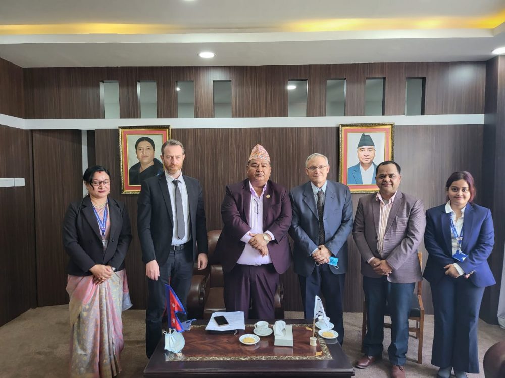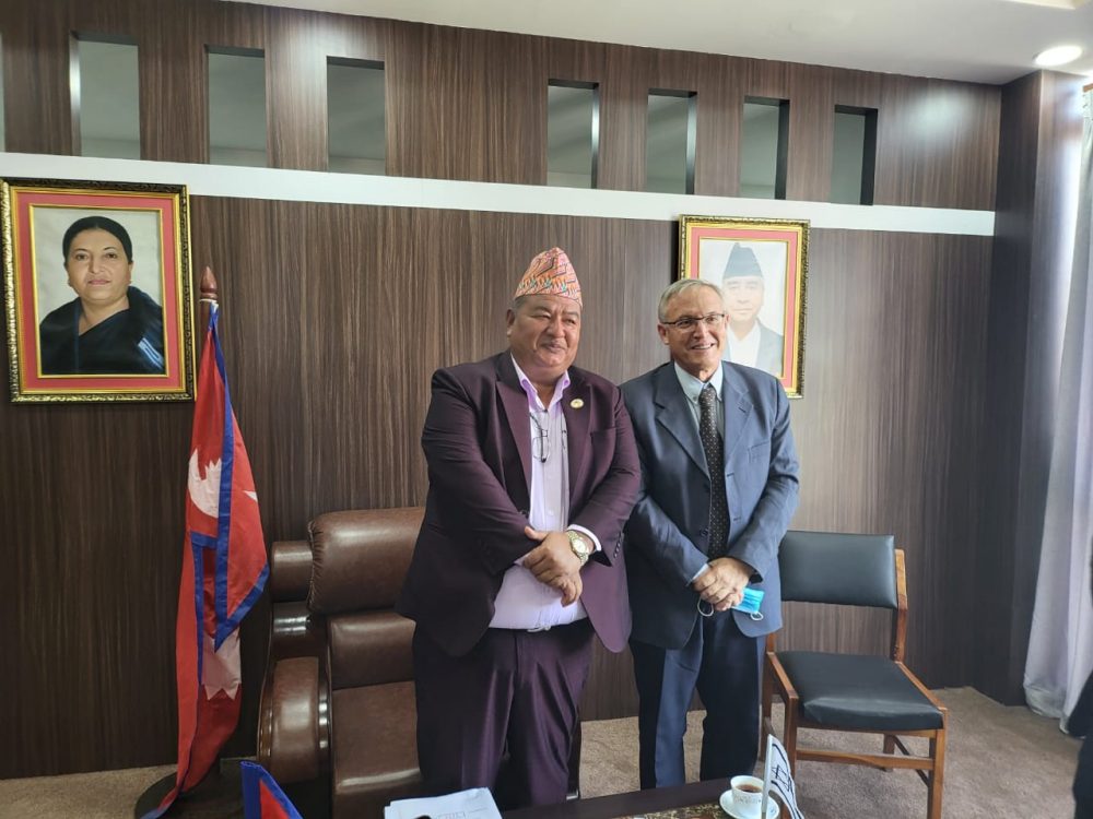 काठमाडौं । श्रम, रोजगार तथा सामाजिक सुरक्षामन्त्री कृष्णकुमार श्रेष्ठसँगनेपालका लागि इजरायलका राजदुत हनान गोदरले शिष्टाचार भेट गरेकाछन् । मन्त्रालयमा आज भएको भेटवार्तामा उनिहरूबीच नेपाल–इजरायलबीचको आपसी सम्बन्ध र दुई पक्षीय चासोबारे छलफल भएको छ ।