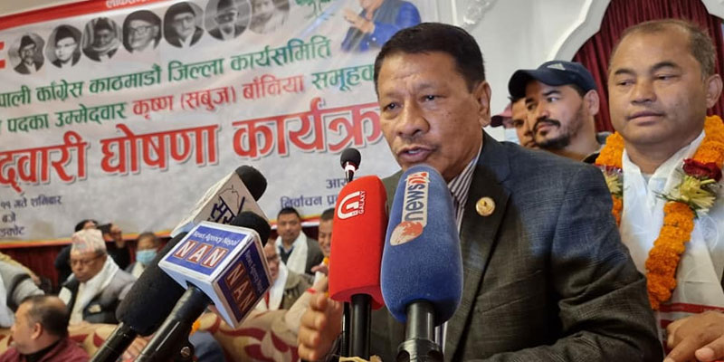 कांग्रेस काठमाडौँका सभापतिका उम्मेद्वार कृष्ण सबुज बानियाँले कांग्रेस संगठनलाई थप सशक्त बनाउन आफूले दोस्रो कार्यकालका लागि सभापति पदमा उम्मेद्वारी दिन लागेको बताए । बानियाँ समूहबाट उपसभापतिमा राजकुमार नकर्मी र गोकर्ण केसी, सचिवमा गोविन्द पुडासैनी र इन्द्रबहादुर थापा र सह-सचिवमा रोमेल श्रेष्ठ र प्रा.डा. अमिता प्रधानले उम्मेद्वारी दिने घोषणा गरेका थिए ।