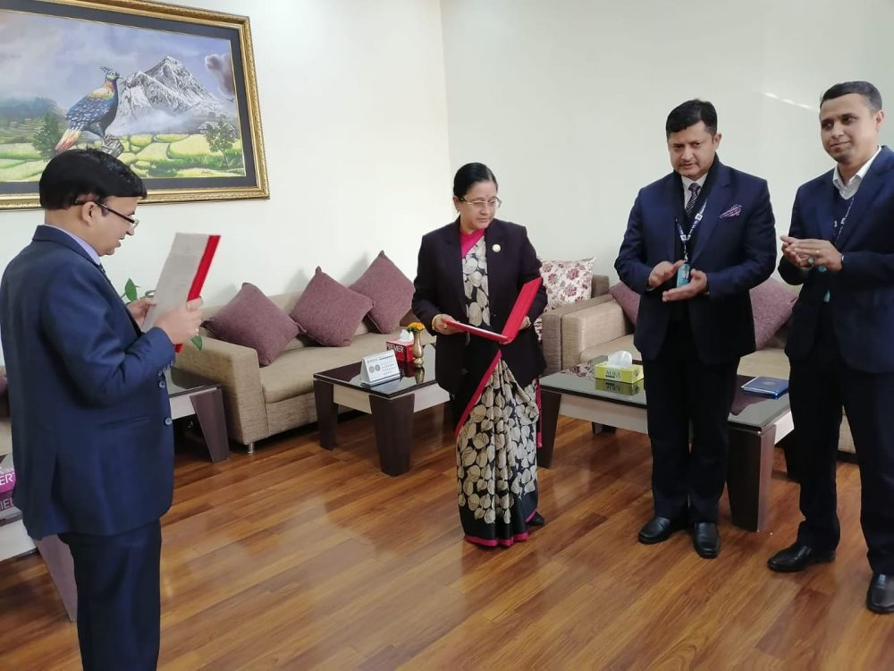 नवनियुक्त अध्यक्ष नेपालले भुक्तानी तथा फछ्र्यौट विनियमावली बमोजिम आज नेपाल राष्ट्र बैंकका डेपुटी गभर्नर डा. नीलम ढुंगाना तिम्सिनाले पद तथा गोपनियताको शपथ ग्रहण गराएका छन् ।
