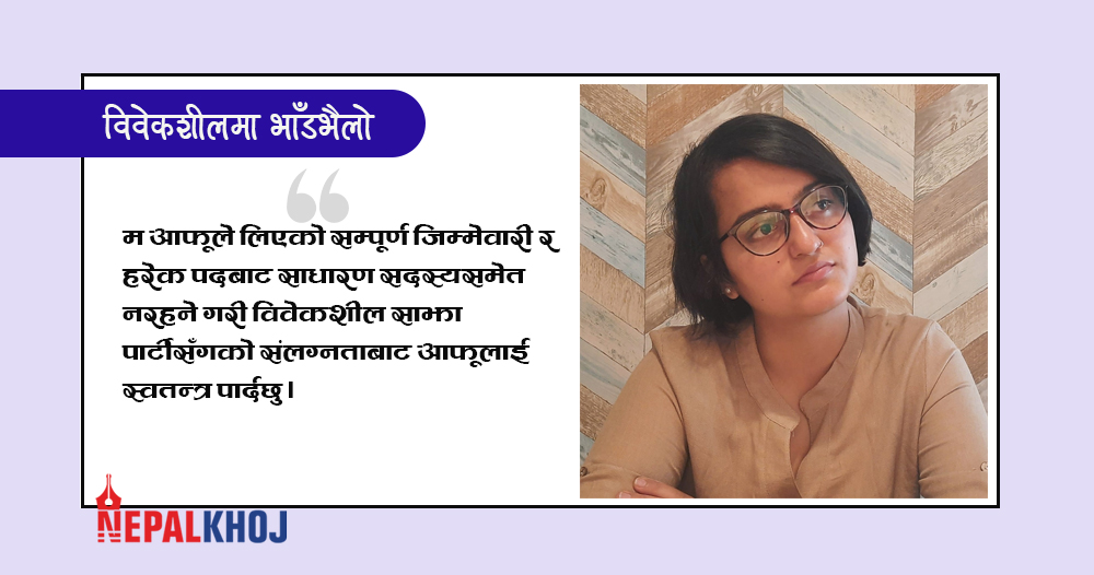 ‘म आफूले लिएको सम्पूर्ण जिम्मेवारी र हरेक पदबाट साधारण सदस्यसमेत नरहने गरी विवेकशील साझा पार्टीसँगको संलग्नताबाट आफूलाई स्वतन्त्र पार्दछु’, विज्ञप्तिमा भनिएको छ ।