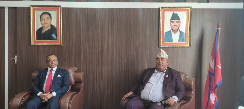 काठमाडौं । श्रम, रोजगार तथा सामाजिक सुरक्षामन्त्री कृष्णकुमार श्रेष्ठसँग नेपालका लागि गणतन्त्र सिसेल्सका राजदूत थोमस सेल्भी पिल्लेले शिष्टाचार भेट गरेका छन् । मन्त्रालयमा आज भएको भेटमा उनीहरुबीच नेपाल र सिसेल्सको द्धिपक्षीय हित र आपसी सम्वन्धबारे छलफल भएको छ ।