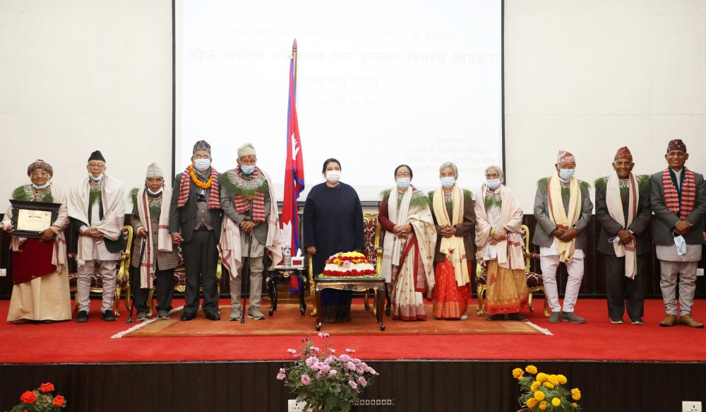 काठमाडौं । सरकारले प्रथम राष्ट्रिय ज्येष्ठ नागरिक दिवस मनाएको छ । आईतवार शीतलनिवासमा ज्येष्ठ नागरिकहरुलाई सम्मान कार्यक्रम गर्दै राष्ट्रपति विद्यादेवी भण्डारीले प्रथम राष्ट्रिय ज्येष्ठ नागरिक दिवसको शुभारम्भ गरेकी हुन् ।