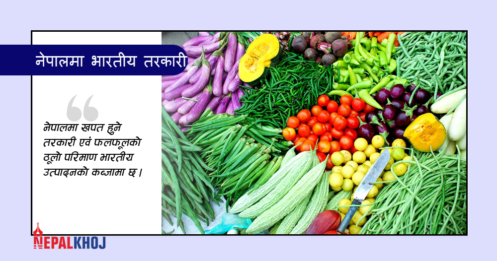 यसबाट स्पष्ट हुन्छ नेपालमा खपत हुने तरकारि एवं फलफुलको ठुलो भागमा भारतीय उत्पादनको कब्जा छ । नेपालमा भारतका अतिरिक्त पाकिस्तान र बगलादेशबाट पनि तरकारी, फलफुल आदि आयात हुन्छन् ।