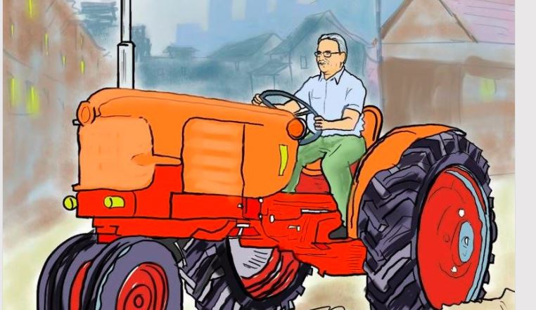 काठमाडौं । नेकपा (माआवादी केन्द्र) का अध्यक्ष पुष्पकमल दाहाल, प्रचण्ड एउटा गाउँमा ट्याक्टरको स्टेरिङ घुमाउँदै छन्। हो, कम्युनिष्ट नेताहरुको श्रमजीवी वर्गको प्रतिनिधिपात्र सरह देखिन्छ यो सिर्जना । त्यसैले स्वयं नेता प्रचण्डले पनि नकार्न सक्नुभएन, सिर्जनालाई राम्रो भने र एकैछिन भावुक बन्दै गरे।