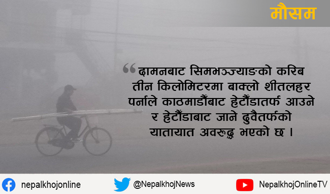 उनका अनुसार दामनबाट सिमभञ्ज्याङको करिब तीन किलोमिटरमा बाक्लो शीतलहर पर्नाले काठमाडौँबाट हेटौँडातर्फ आउने र हेटौँडाबाट जाने दुवैतर्फको यातायात अवरुद्ध भएको हो ।