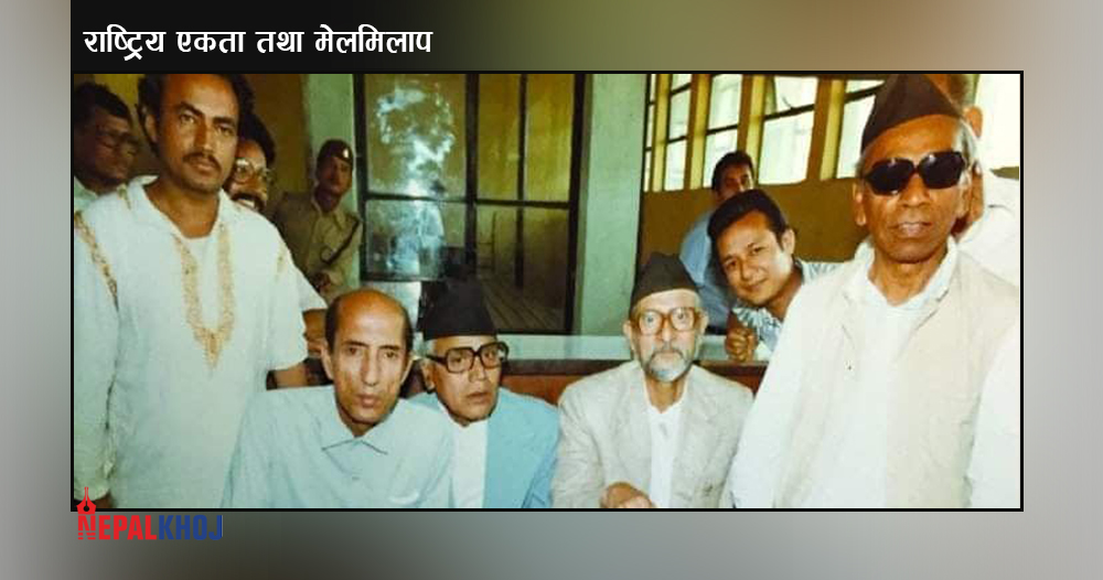 जननायक बीपी कोइरालाद्धारा प्रतिपादित राष्ट्रिय मेलमिलाप ४६ वर्षमा प्रवेश गरेको छ । आजको यस ऐतिहासिक अवसरमा कुनै पनि वाद र विवादभन्दा माथि मेलमिलाप वादको खाँचो राष्ट्र निर्माणका लागि छ। मेलमिलापको सान्दर्भिकता आज पनि कैयन् गुणा बढेको छ। महाशक्ति राष्ट्रहरुको चलखेललाई निस्तेज पार्दै नेपालको सार्वभौमसत्ता र अखण्डतालाई अक्षुण्ण राख्ने चुनौती हाम्रो सामु छ।