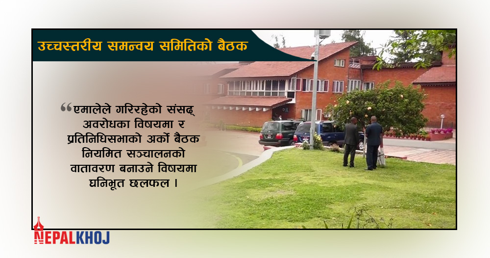 काठमाडौं । प्रधानमन्त्रीको सरकारी निवास बालुवाटारमा उच्चस्तरीय समन्वय समितिको बैठक बसेको छ । आज बसेको बैठकले राष्ट्रियसभामा गठबन्धनका उम्मेद्वारलाई जिताउनेबारे घनिभूत छलफल गरेको छ ।