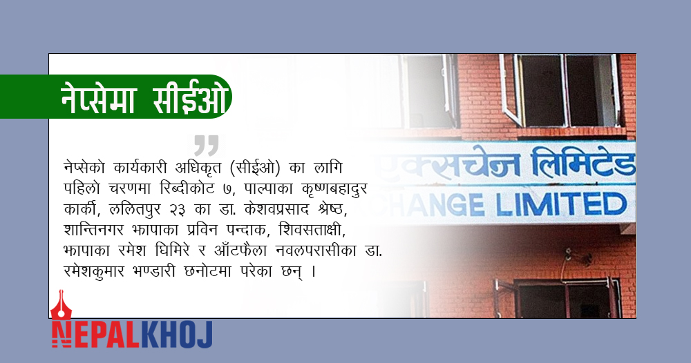 नेप्सेको सीईओका लागि पहिलो चरणमा ५ आवेदक छनोट (नामसहित)
