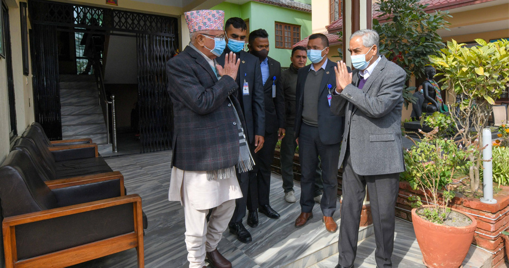 काठमाडौं । प्रधानमन्त्री शेरबहादुर देउवा र नेकपा एमालेका अध्यक्ष केपी शर्मा ओलीबीच बालकोटमा भेटघाट भएको छ । प्रधानमन्त्री देउवा प्रमुख प्रतिपक्षी दलका नेता ओलीसँग भेटघाट गर्न आज बिहानै भक्तपुरको बालकोट पुगेका थिए ।