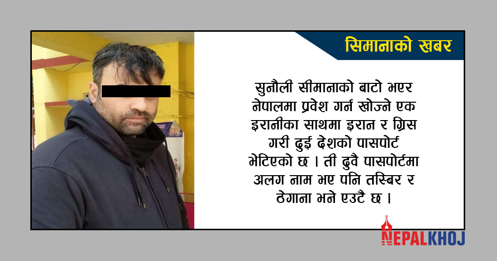 काठमाडौं । सुनौली सीमानाको बाटो भएर नेपालमा प्रवेश गर्न खोज्ने एक इरानी नागरिक पक्राउ परेका छन् । उनको साथमा इरान र ग्रिस गरी दुई देशको पासपोर्ट फेला परेको छ । ती दुवै पासपोर्टमा अलग नाम भए पनि फोटो र ठेगाना भने एउटै छ । ग्रिसको पासपोर्टमा भएको निजको भिसा फर्जी भएको सम्बन्धित अधिकारिहरूले बताएका छन् । यसक्रममा इरानका नागरिकसँगै एक अफगानी नागरिक तथा दिल्लीका अर्का एक व्यक्तिविरुद्ध मुद्दा दायर गरिएको अध्यागमन विभागले जनाएको दैनिक जागरणले समाचारमा उल्लेख गरेको छ ।